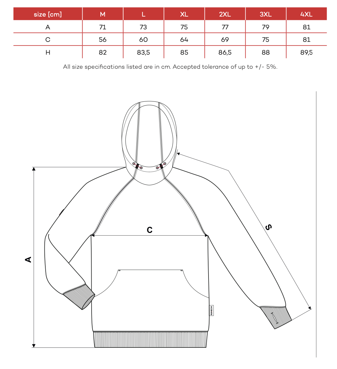 • dolny ściągacz, mankiety i lamówka z dzianiny ściągaczowej 2:2 z dodatkiem 5 % elastanu